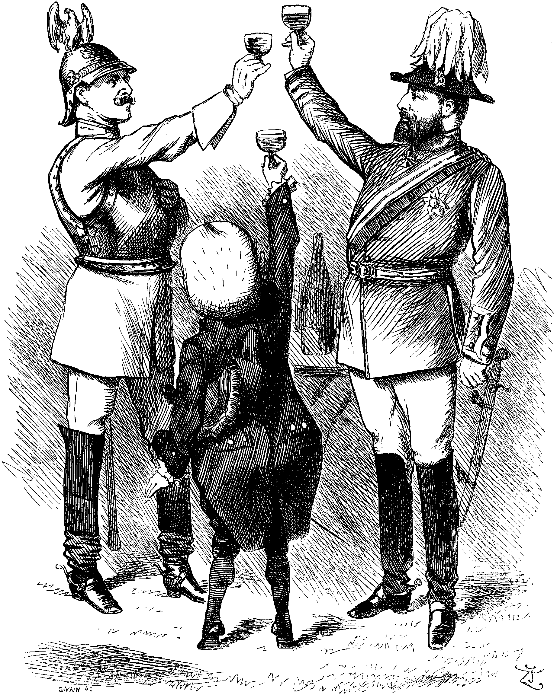 Tuesday.—"My studies as you know, dear TOBY, have not specially lain in the domain of history," said Professor STOKES, in the course of a brief address delivered to me in a corner of the Library. "The pure dry light of mathematics has had an irresistible attraction for me. Possibly, therefore, I am wrong in some more or less immaterial points when I say that, since the time of WARWICK, we have had no one prominently in English public affairs with quite the same influence as is possessed by my Right Hon. friend JOSEPH CHAMBERLAIN. The time is gone by when kings were made and unmade. But my Right Hon. friend has done more than anyone to make the present Ministry possible, and, having made them, he claims [pg 24] the right to direct, and, in some respects, even to mould their policy. A very curious phenomenon, very curious indeed. If you were not so evidently in a hurry, I should like to dilate upon it."
