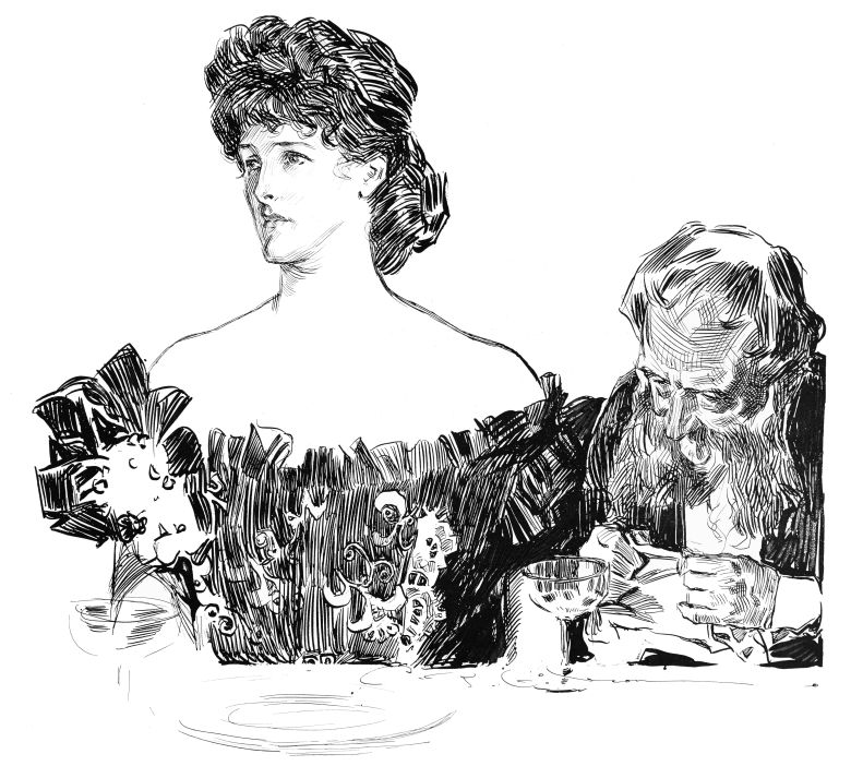 A London reception is bright and amusing. In the early part of the evening statesmen, diplomats, and older people are in the majority; at eleven o’clock those who have been to the play arrive, and a little later the actors themselves. From the staircase people can best be seen. It is always crowded by those who are on their way to pay respects to the hostess in the hall above, and by those who have already done so and are on their way down to the supper-room. Above and below a dense crowd elbow and talk around and through you. You are slowly twisted past your hostess and through the parlors, and then finally back to the staircase, down which you can go as slowly as you please. No one is in a hurry—so out into the early morning, between rows of uniformed coachmen standing like sentries sleeping on their post.