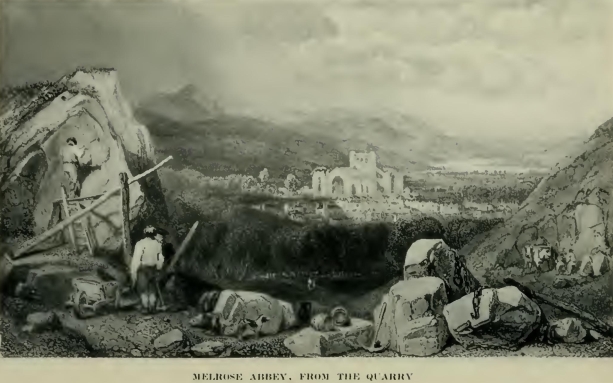 The knowledge which I thus acquired I had frequent opportunities of retailing to those visiters whom the progress of a Scottish tour brought to visit this celebrated spot. Without encroaching on the privilege of my friend the sexton, I became gradually an assistant Cicerone in the task of description and explanation, and often (seeing a fresh party of visiters arrive) has he turned over to me those to whom he had told half his story, with the flattering observation, "What needs I say ony mair about it? There's the Captain kens mair anent it than I do, or any man in the town." Then would I salute the strangers courteously, and expatiate to their astonished minds upon crypts and chancels, and naves, arches, Gothic and Saxon architraves, mullions and flying buttresses. It not unfrequently happened, that an acquaintance which commenced in the Abbey concluded in the inn, which served to relieve the solitude as well as the monotony of my landlady's shoulder of mutton, whether roast, cold, or hashed.