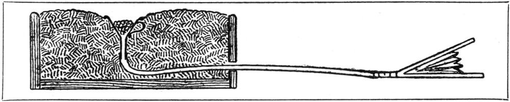 Eine rote Siegellackstange, einen Hartgummistab, der aber auch durch einen Hartgummikamm oder -federhalter ersetzt werden kann, sowie einen Glasstab und einige Holundermarkkügelchen muß man sich kaufen.[S. 3] Glas und Hartgummigegenstände beschafft man sich am besten und sichersten bei einem Mechaniker. Das Holundermark kann man auch selbst gewinnen: Im Winter sammelt man einige starke einjährige Triebe und macht das Mark durch Abspalten des Holzes frei. Mit einem scharfen Messer werden die Kügelchen roh geschnitzt und schließlich durch Rollen zwischen den Händen schön rund gemacht.