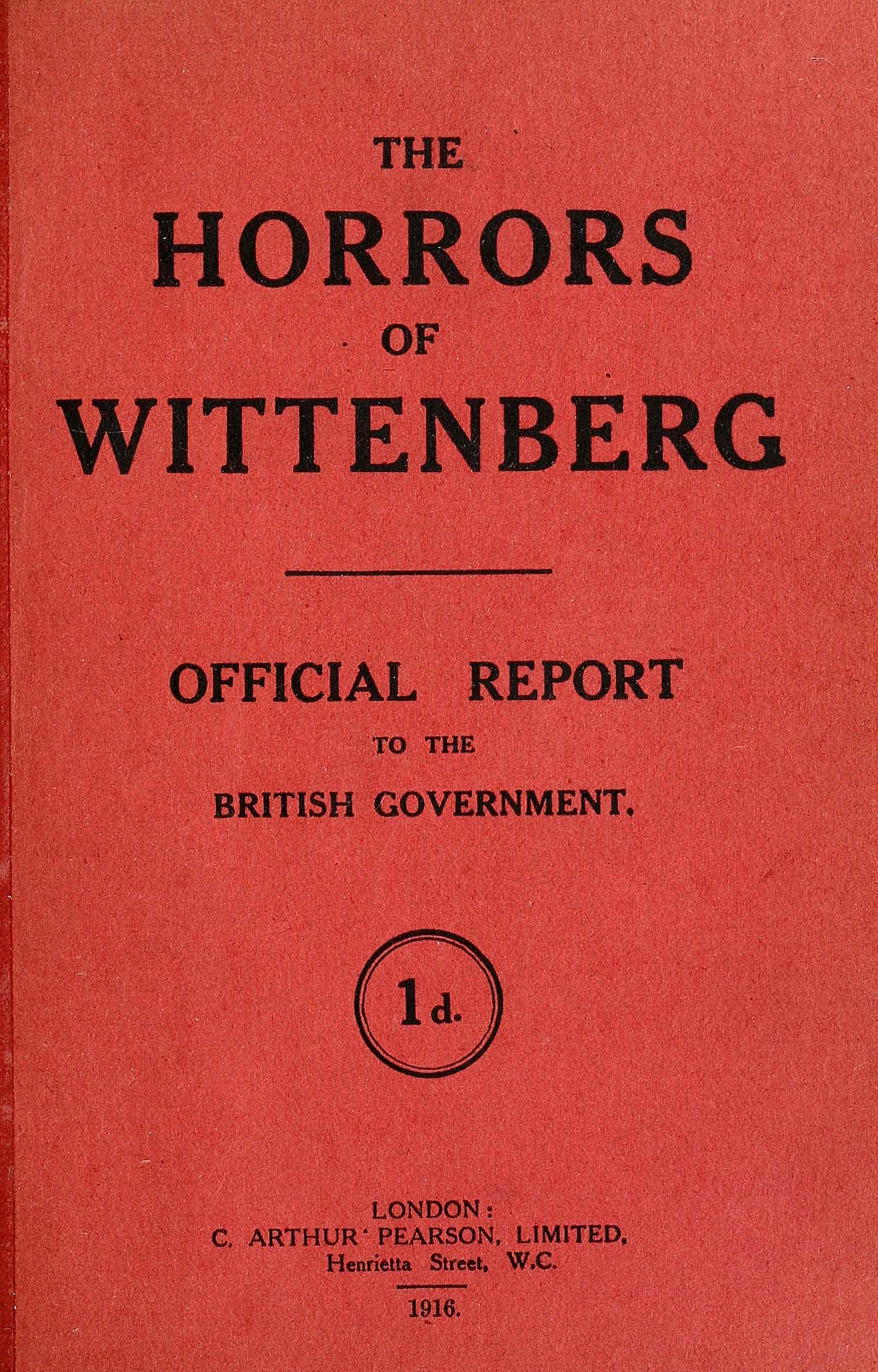 Now that Major Priestley, R.A.M.C., Captain Vidal, R.A.M.C., and Captain Lauder, R.A.M.C., have been permitted to return to this country after a prolonged detention in Germany still unexplained, the Government Committee on the Treatment by the Enemy of British Prisoners of War are in a position to submit for the consideration of His Majesty’s Government their report upon the conditions of the Camp at Wittenberg during and prior to the epidemic of typhus which devastated it in the first six months of 1915.