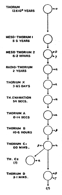 Hence the actual production of α-particles or helium atoms from thorium is only 0·325/1·25 = 0·26 of that of uranium. Experimental determinations 0·23 (Strutt, 1910), 0·27 (Rutherford and Geiger, 1910). [Pg 179]
