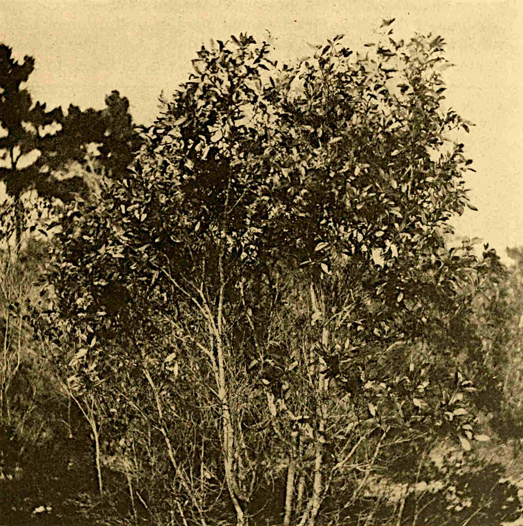 The first and by far the most important oil distilled from a wild plant indigenous to the United States was turpentine oil, which was distilled as early as the middle of the eighteenth century. The production of this oil is rapidly declining, owing principally to the employment of very wasteful methods, which have resulted in the destruction of many of the large pine forests. Turpentine is still obtained, however, from the longleaf pine (Pinus palustris), which occurs quite abundantly in the South Atlantic States from Virginia to Florida. The price of this valuable oil has risen so rapidly in recent years, owing to the shortage of raw material from which it is distilled, that a suitable substitute would be most desirable. This [Pg 8]problem is now receiving the attention of scientific research workers, but no satisfactory substitute which can supply the trade has yet been found.