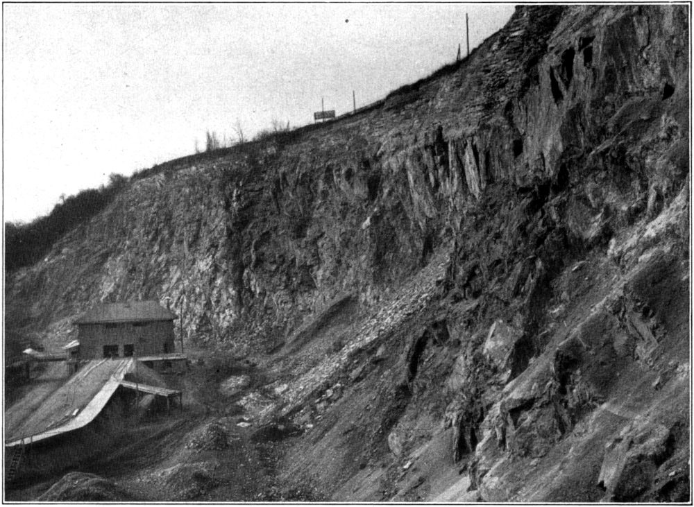 Der Syenit selbst gehört heute zu den wertvollen Bodenschätzen und wird im Plauenschen Grund in einer ganzen Reihe großer Steinbrüche gewonnen (Abb. 7). Diese Steinbruchindustrie ist bereits etwa hundert Jahre alt. Zum kleinsten Teil nur werden die gebrochenen Steine zu Pflastersteinen verarbeitet, wie auch die ganze Talstraße von Potschappel bis Plauen keinen einzigen Syenitpflasterwürfel aufweist. Meist findet der Syenit als Schotter für Straßen, Eisenbahnen und zur Herstellung von Beton Verwendung. Die großen Steinbrüche sind heute ein wesentlicher Charakterzug des Plauenschen Grundes.