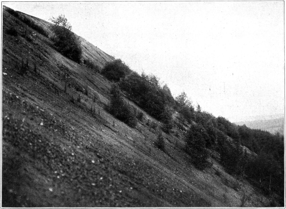Vom Kambrium bis zur Mitte der Karbonzeit war Mitteleuropa vom Meere bedeckt. Auf dem Boden dieses Meeres bildeten sich Ablagerungen von Tonschlamm und Sand, zu denen sich kieselige und kalkige Ausscheidungen [101]organischer Herkunft gesellten. Aus den ursprünglich losen Absätzen sind feste Gesteine geworden, die wir jetzt als Tonschiefer, Grauwacken, Kieselschiefer und Kalksteine kennen. Mit diesen Meeresgesteinen zusammen finden wir, besonders im Devon, vulkanische Aschen und Laven, die man Diabastuff und Diabas nennt.