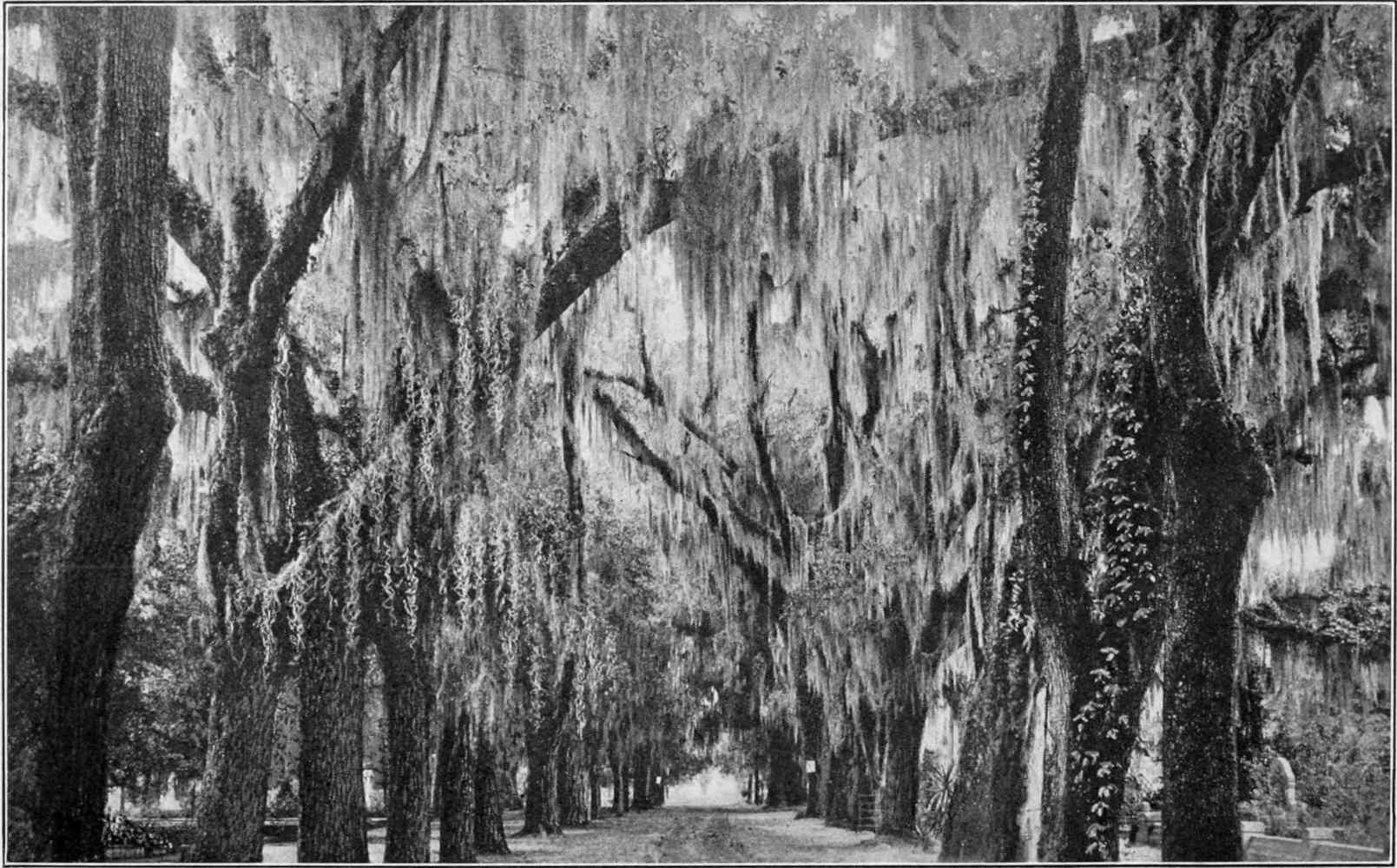 Plate 1.—Live oaks covered with Spanish moss (Tillandsia).