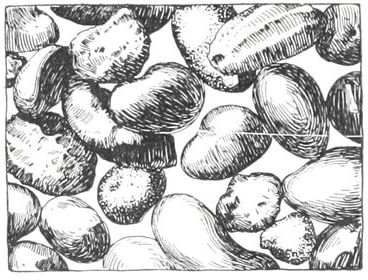 Material.—Seeds of squash, pumpkin, or other melon; castor bean; any kind of common kidney bean; grains of Indian corn.