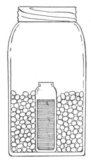 Appliances.—In the absence of gas, an alcohol or kerosene lamp may be used for heating. A double boiler can easily be made by using two tin vessels of different sizes. Partly fill the larger one with water, set in it the smaller one with the substance to be heated, and place over a burner. A pair of scales, a strong six-ounce bottle, wire-netting, cord, and wax or paraffin should be provided.