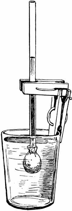 Fehling’s Solution may be obtained of the druggist, or, if preferred, it may be prepared in the laboratory as follows: (a) Dissolve 173 grams of crystallized Rochelle salts and 125 grams of caustic potash in 500 cc. of water; (b) dissolve 34.64 grams crystallized copper sulphate in 500 cc. of water, and mix equal parts as needed. (For English equivalents, see Appendix, Weights and Measures.) The two mixtures must be kept separate till wanted for use, or prepared fresh as needed.