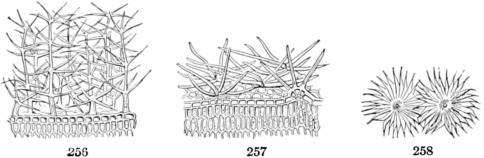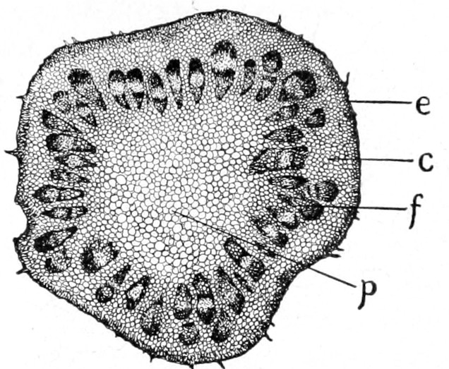 The theory of their comparatively recent origin from an aquatic ancestor is further borne out by the many points of similarity between their internal structure and that of hydrophytes (318), and also by the great proportion of aquatic plants among them, amounting to thirty-three per cent, while in dicotyls the proportion is only four per cent. Can you give any reasons, from your examination of their internal structure (113, 114), for believing that the line of development which they have followed is a less effective one for meeting conditions now existing on the globe than that attained by dicotyls?