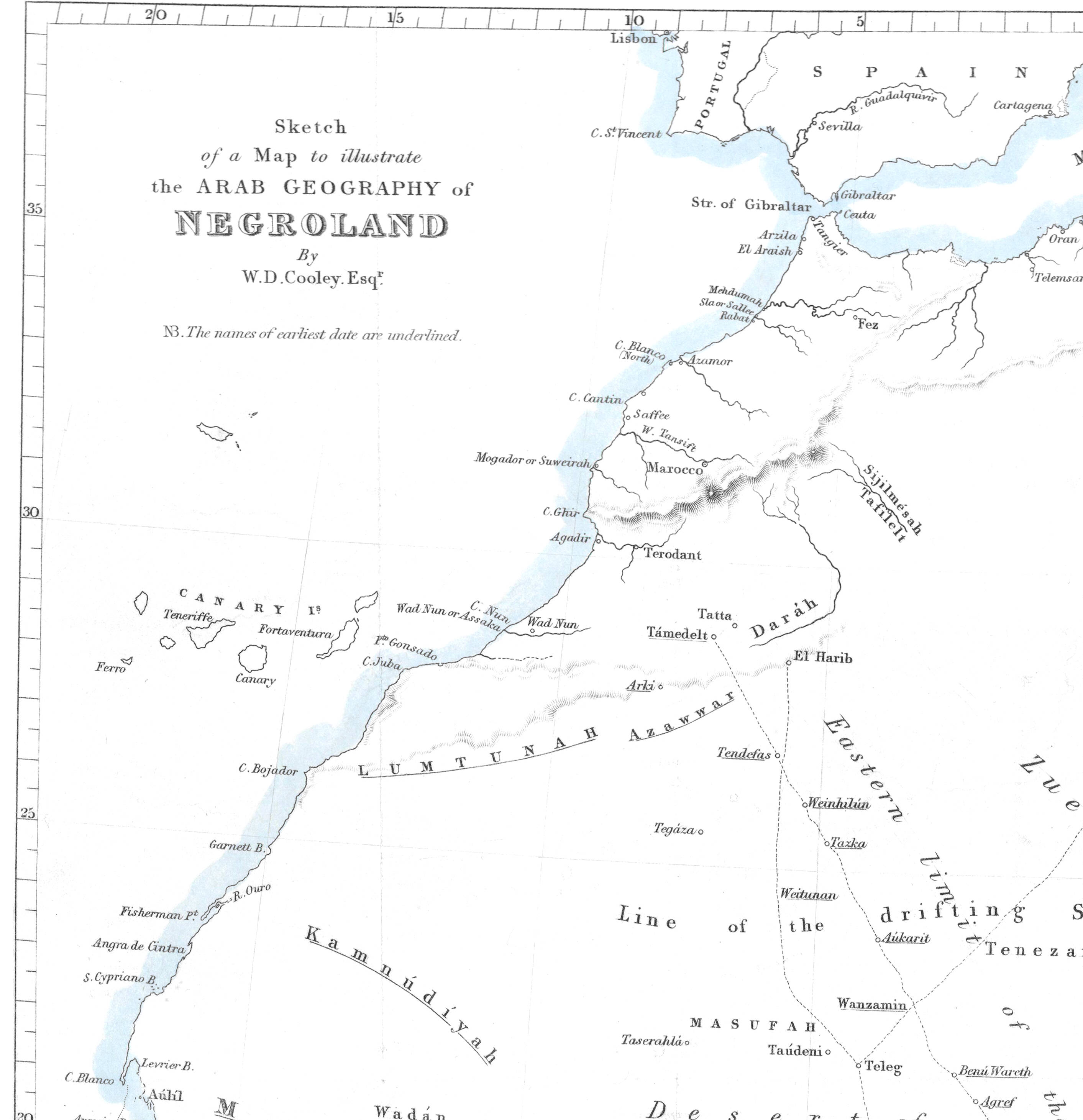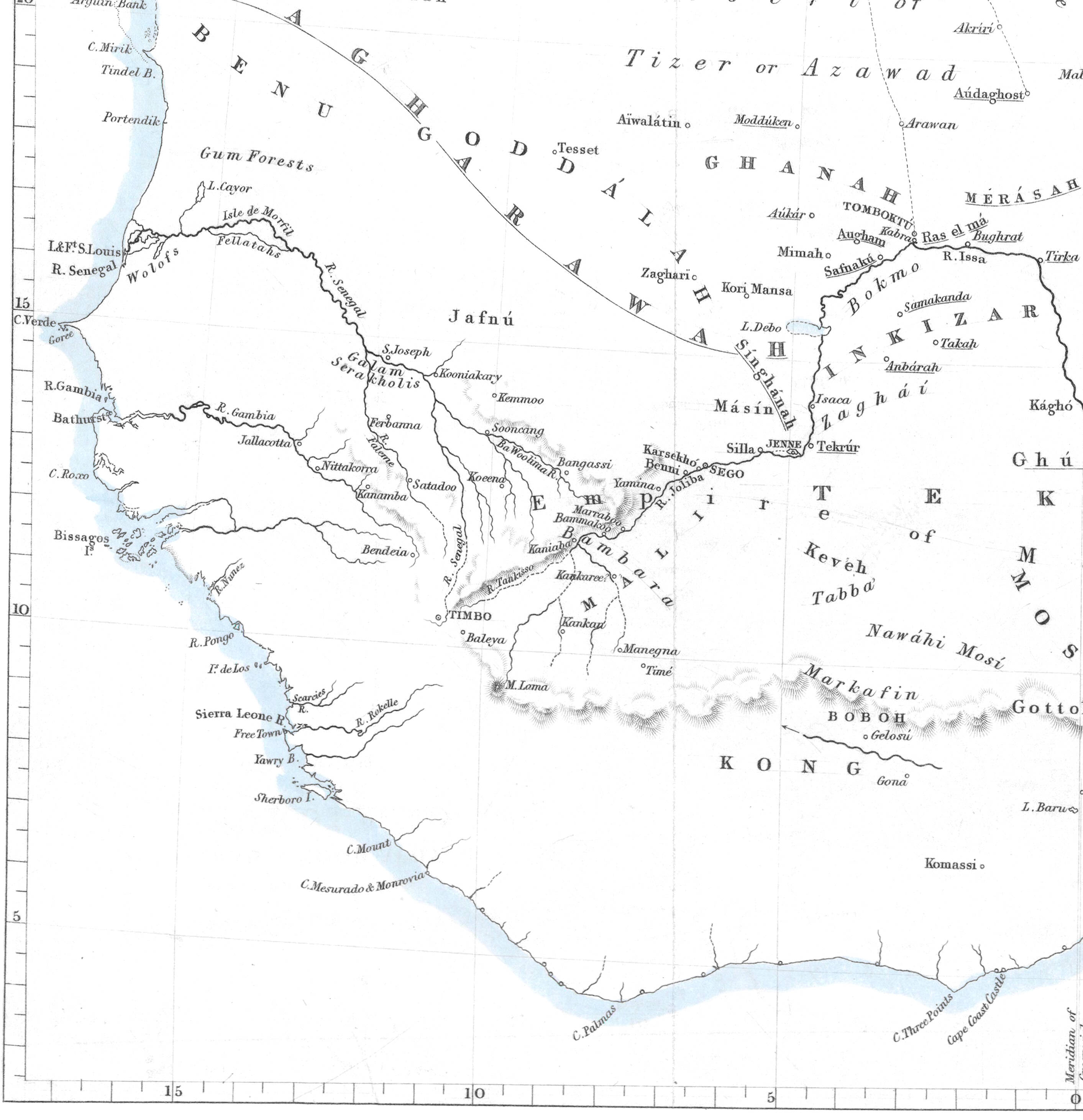 Here then, in the first place, it is manifest that Ghánah coincides with Gualata (Walata). The salient point of Negroland towards the north-west ranks as the extreme west, and the countries which lie to the south, though extending further westward, are placed after it. Hence the Ghinea and Melli of Leo, both supposed by him to reach the ocean, nevertheless follow Gualata.
