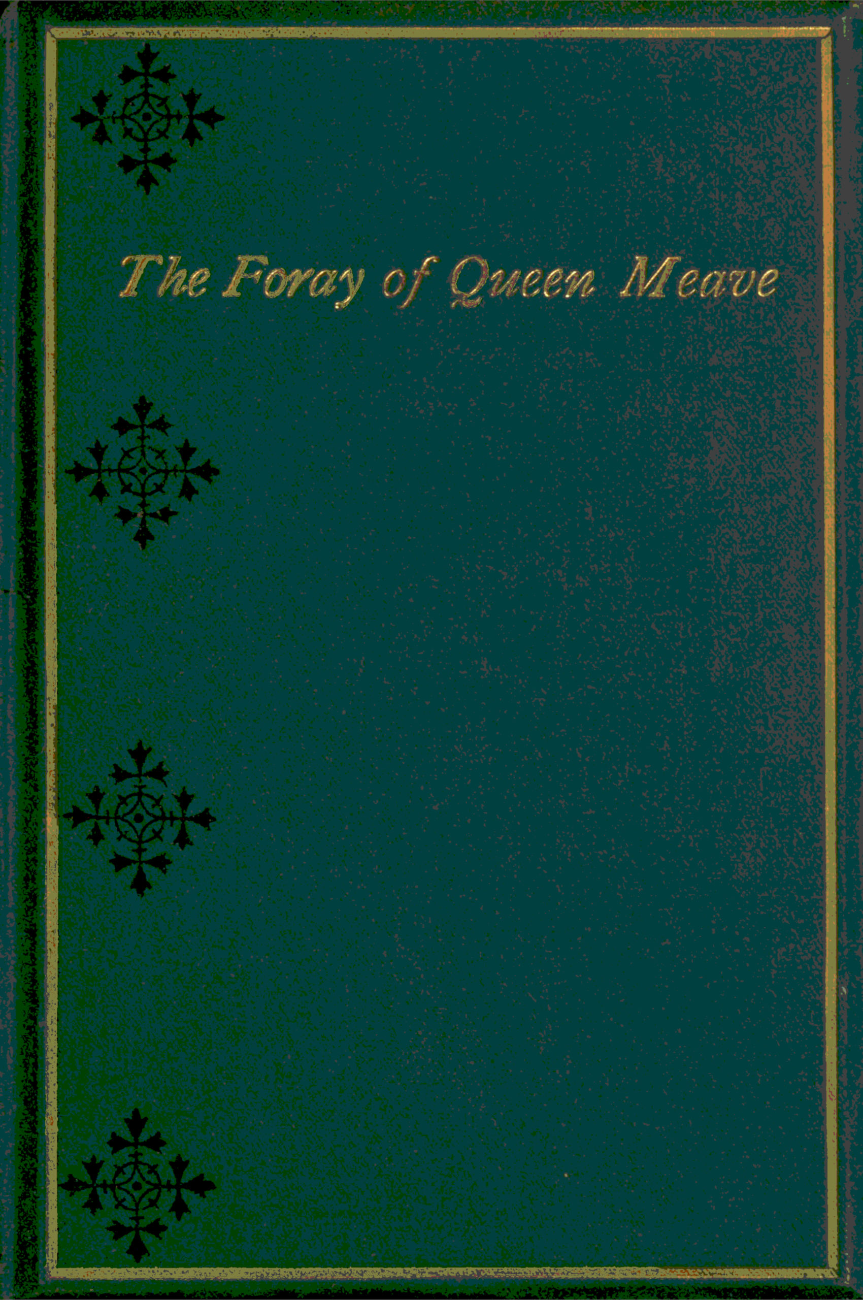 Meave, Queen of Connacht,[24] and Ailill her husband, waking one morning fall into a disputation, each claiming to be the worthier of the two, and the wealthier. Their lords decide that the king and queen are great and happy alike in all things save one only, namely, that Ailill possesses the far-famed white Bull, Fionbannah. Meave hearing that Conor Conchobar, King of Uladh,[25] boasts a black Bull mightier yet, is fain to purchase it, but cannot prevail so far. She therefore declares war against Uladh. There meets her Faythleen the Witch, who prophesies calamity, but promises that in aid of Meave she will breathe over the realm of Uladh a spirit of imbecility. This she does; yet Cuchullain, unaided, afflicts the whole army of Meave by exploits which to him are but sports. Fergus, the exiled King of Uladh, narrates to Meave the high deeds of Cuchullain wrought in his childhood.