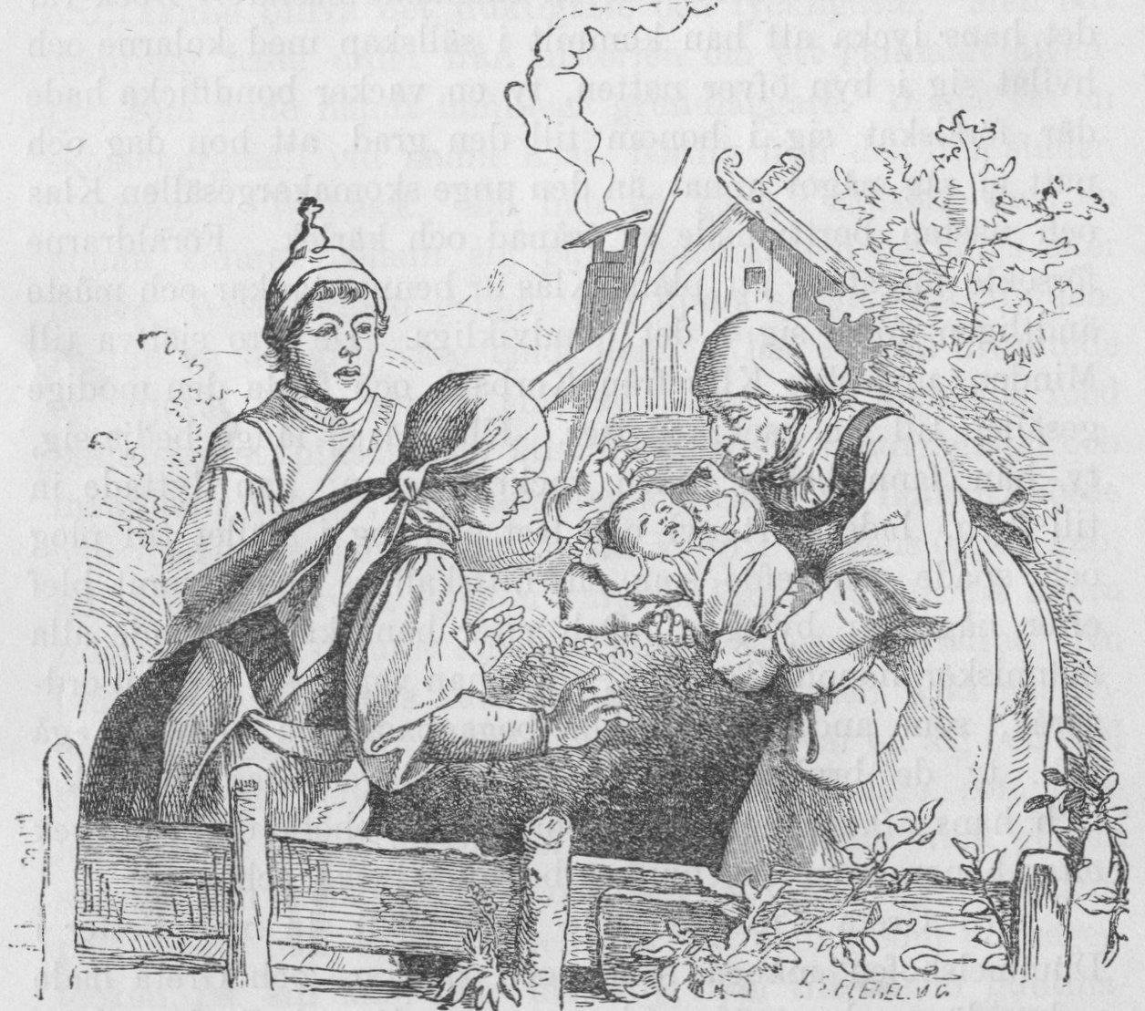 Öfverallt i konungaborgen härskade stor glädje. Med sin moder och sina systrar kom den unge konungen att tacka sin hustru och trycka sina barn till sitt hjärta, ty han var lycklig och stolt att hans släkt skulle fortlefva. Konungen förde biskopen med sig, att han med sin välsignelse skulle styrka konungens gemål, att han med kraftiga besvärjelser skulle skydda barnkammaren och sjukrummet mot det ondas våld och med heliga namn bevara de små mot onda blickar.