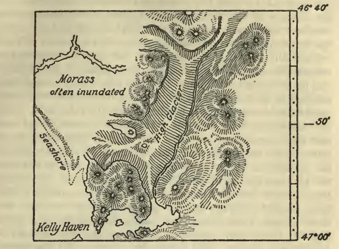 I was often interested by watching the clouds, which, rolling in from seaward, formed a bank just beneath the highest point of the Corcovado. This mountain, like most others, when thus partly veiled, appeared to rise to a far prouder elevation than its real height of 2300 feet. Mr. Daniell has observed, in his meteorological essays, that a cloud sometimes appears fixed on a mountain summit, while the wind continues to blow over it. The same phenomenon here presented a slightly different appearance. In this case the cloud was clearly seen to curl over, and rapidly pass by the summit, and yet was neither diminished nor increased in size. The sun was setting, and a gentle southerly breeze, striking against the southern side of the rock, mingled its current with the colder air above; and the vapour was thus condensed; but as the light wreaths of cloud passed over the ridge, and came within the influence of the warmer atmosphere of the northern sloping bank, they were immediately re-dissolved.
